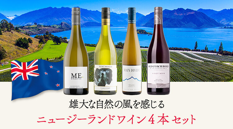 爽やかな風を感じて、思わず笑顔になるようなニュージーランドのワイン。穏やかに晴れた日の午後のピクニックや、いつものテーブルにも気楽にあけて楽しめるワインを集めたセットをご用意しました。緑の大地が身に浮かぶフレッシュな香りのソーヴィニヨン・ブラン、ゆったりとしながらも品の良さも併せ持つシャルドネ、癒される優しい味わいのリースリング、キュートなベリーの香りと滑らかな口あたりが魅力のピノ・ノワールの4本。大自然の中でゆったりと育ったブドウから造られた上質なワインを4本セレクトしました。